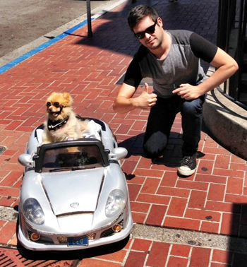 Tam, kde narazil na zajímavý tvor, který provozuje vozidlo ...Ukázalo se, že je to nejmódnější šofér všech San Diegu. Zde je Nano pózoval s ním. To je nejšťastnější Nano vždy bylo od ...dobře ... vůbec! Dokonce i psi složit řidičské zkoušky dříve než my.